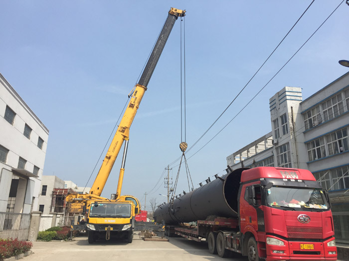 我公司最新制作的脫異丁烷塔,長(zhǎng)達(dá)60.3米,容積196立方,凈重63500千克,刷新了我公司實(shí)際項(xiàng)目制作最長(zhǎng)塔器記錄,在設(shè)備、廠房大門均完好無(wú)損的情況下,成功竣工并裝運(yùn)出車間。